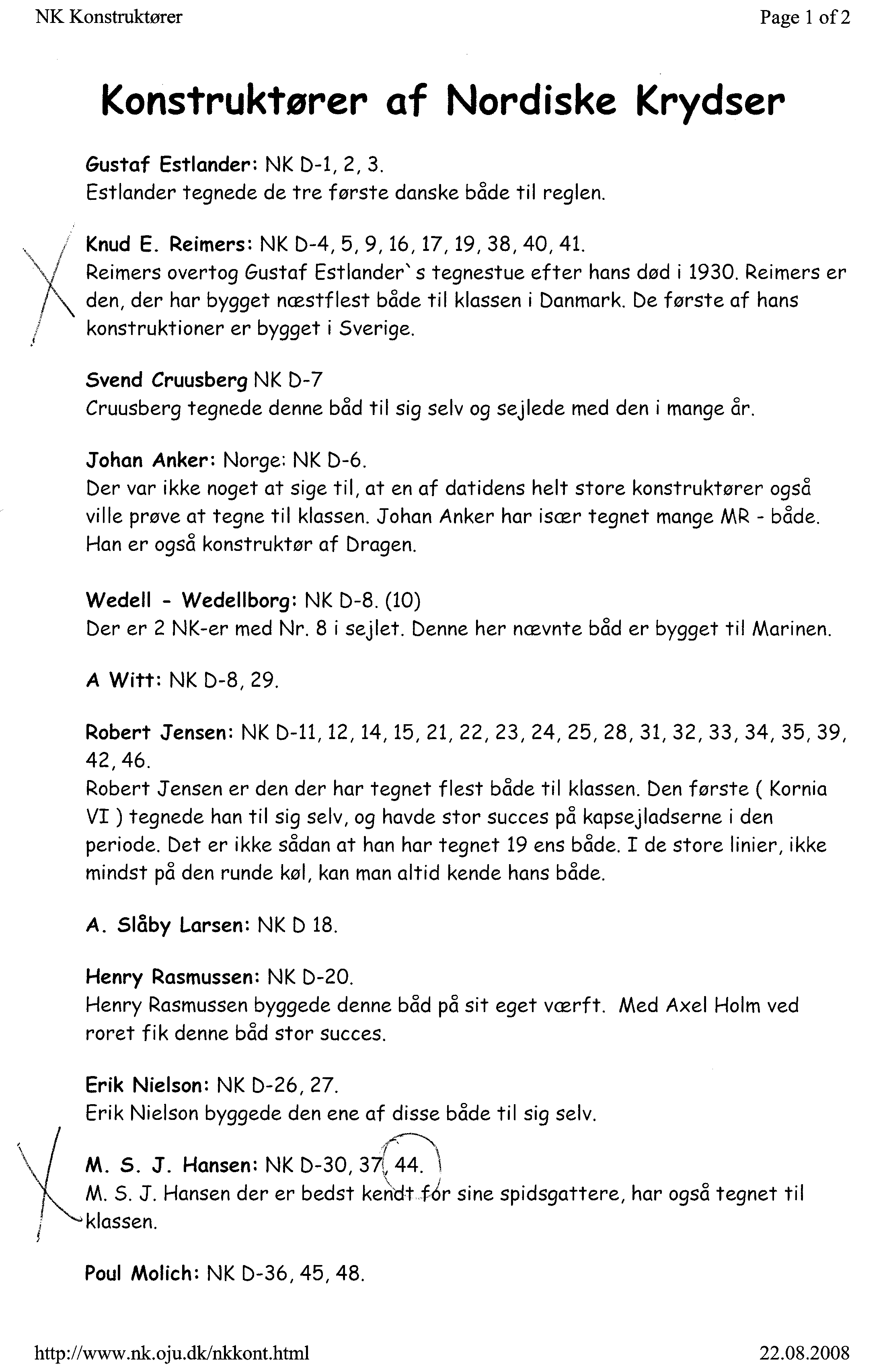 In der Nordisk Krydser Liste (www.nk.oju.dk/nkskibsl.html) ist ein Boot unter dem Namen „Skjoldungen“ gezeichnet von M.S.J. Hansen, gebaut von Einer Olsen 1950 eingetragen. Laut dieser Liste hat Knut Reimers keine Segelnummer 44 gezeichnet, sondern M.S.J. Hansen.