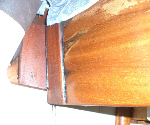 Allerdings gab es gelbe Stellen an der Tennwand zum Bad, da hat wohl jahrelang ein heißer Lockenstab gehangen....jetzt ist da ein kleines Loch ohne Mahagonifurnier...-ich -blutiger Anfänger als Restaurateur!!!!Ärgerlich!