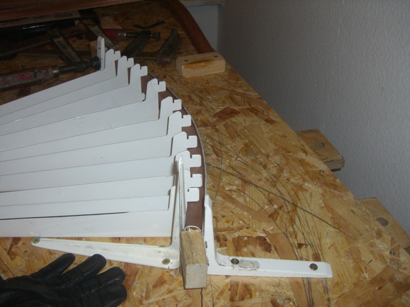 nun gemacht habe ich das schon, allerdings sollten die gebogenen Hölzer hinterher in einer Form gehalten werden, denn sie haben das bestreben sich wieder zu richten. Ich habe Spanten gebogen und diese dann an die Bruchstellen der Alten angeklebt außerden sind sie unter einem Balkwerger so das sie auch so nicht mehr zurück können.