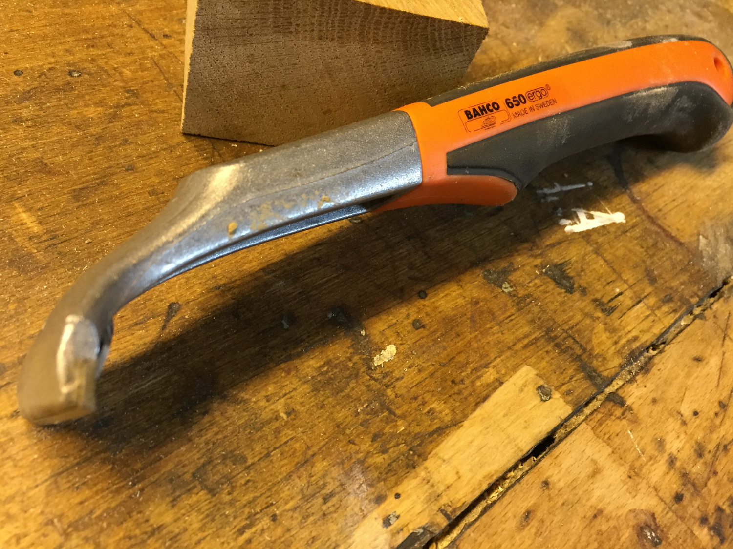 Zum abziehen des Lackes innen habe ich einen Baco Abzieher verwendet. Um unter den Spanten zu entfernen habe ich mir einen ca. 20mm breites Stecheisen an der Spitze stumpf geschliffen. Damit lässt sich der harte Lack gut wegstoßen ohne in das Holz zu schnitzen.