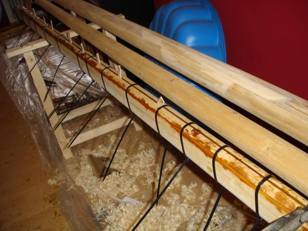 Wie von Andrè vermerkt , ist dan der mast nach dem verleimen mit ratschen spannbänder zusammen gezurrt .