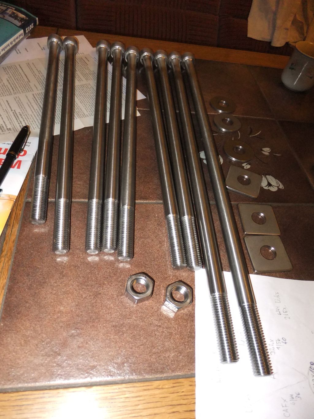 Die neuen Kielbolzen kannst Du als angehängte Bilder sehen. Sie sind aus Vollmaterial 18mm gefertigt worden, wobei an ein Ende die Gewinde geschnitten wurden und an das andere Ende der Kopf geschweißt. Wichtig sind auch großflächige Unterlegscheiben, 5 mm stark.