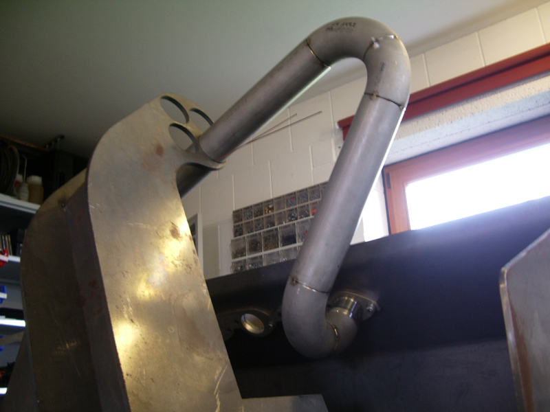 Das zweite Bild zeigt einen in Bau befindlichen doppelwandig wassergekühlten Fächerrohrauspuff für einen V8 - Benzin Hochleistungsmotor mit 14,6 Litern Hubraum.