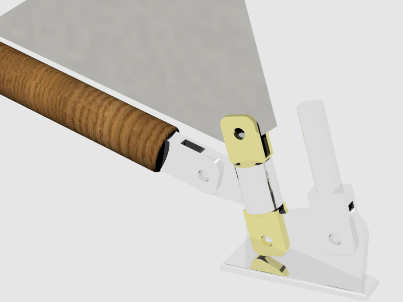 Du könntest den Drehpunkt weiter nach unten bekommen (fast auf Deck), wenn Du den oberen Relingsdraht zum Segeln einfach abmachst, und beim unteren Draht einhängst. Dazu nimmst du einen einfachen Sliphaken oder Pelikanhaken.