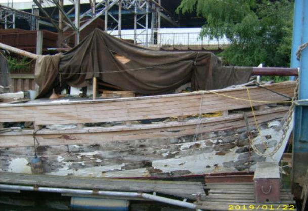 Mein Name ist Tom, ich habe sehr günstig einen 16,6m langen und 4,70m breiten Segelkutter mit Holzrumpf gekauft. Da ich mit Holzbooten und deren Instandhaltung bisher unheimlich wenig Erfahrung gesammelt habe, wäre es schön, wenn die Experten hier im Forum mal einen Blick auf die Bilder werfen könnten, um mir dann mitzuteilen, ob ich an einem hoffnungslosen Projekt arbeiten werde oder ob es Gründe gibt, trotz des anscheinend schlechten Zustands an einen Erfolg zu glauben. Das Boot wurde 1949 gebaut, der Rumpf besteht aus Eiche auf Eiche, bei einem Hochwasser im Frühjahr ist es aufgrund zu kurzer Leinen am jetzigen Liegeplatz gekentert, gesunken und wieder gehoben worden. Laut bisherigem Eigner ist der Rumpf angeblich dicht. Es wurden schon vom vorigen Eigner Restaurationsarbeiten durchgeführt, zum Beispiel wurden die stark beschädigten originalen Holzmasten durch Aluminiummasten ersetzt, (nicht auf den Bildern) außerdem wurde am Heck ein Aufbau angebracht um mehr Platz unter Deck zu haben. Der 250PS-Diesel unter Deck ist seit der Haverie fest und somit defekt, ob er sich noch retten lässt weiß ich nicht. Unter Deck ist der größte Teil der Inneneinrichtung entfernt. Hydraulische Ruderanlage, Segel und einige weitere Bestandteile sind vorhanden.