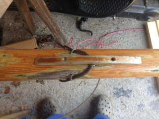 die Krampen hat offensichtlich ein absoluter VOLLIDIOT in den Mast geprügelt. Die sind übrigens vollkommen überflüssig. Die Schlaufe mit dem Klaufall wird nur von dem hölzernen Bügel der auf den Bildern zu sehen ist gehalten.