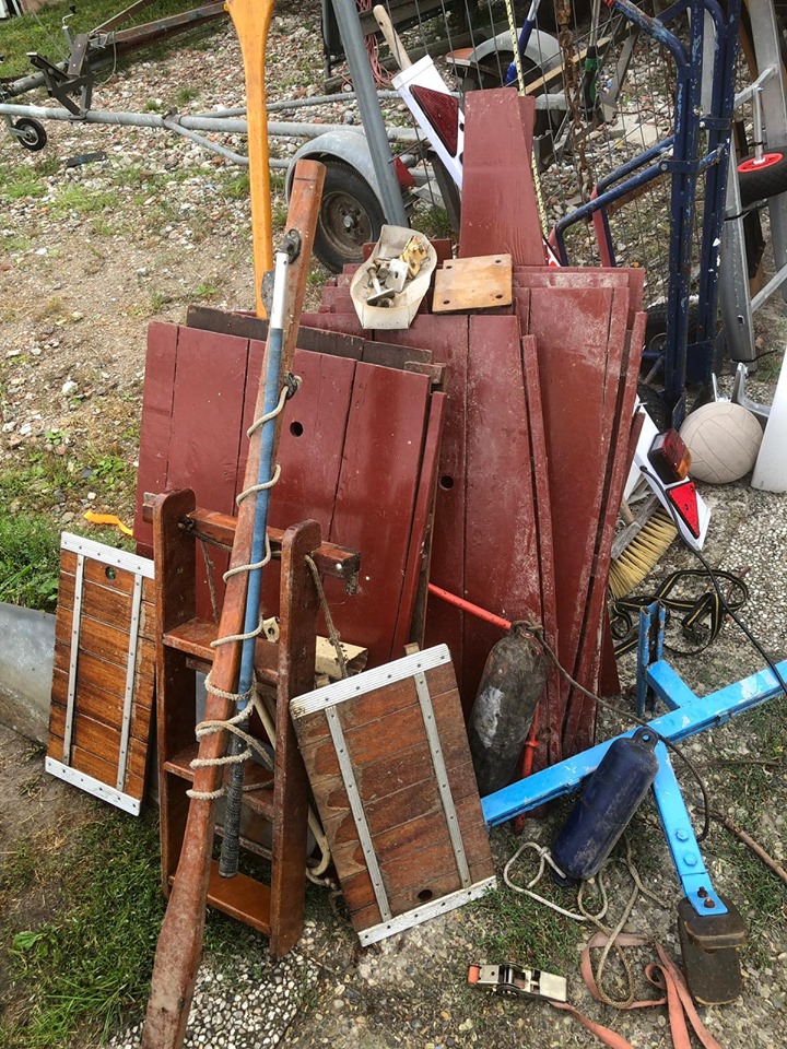 ein Bekannter hat eine H-Jolle vor dem Kamin gerettet.